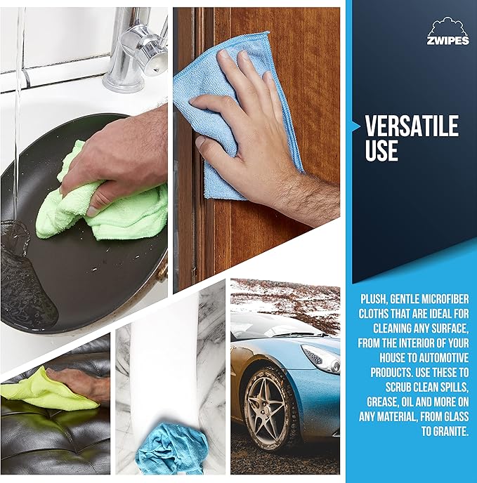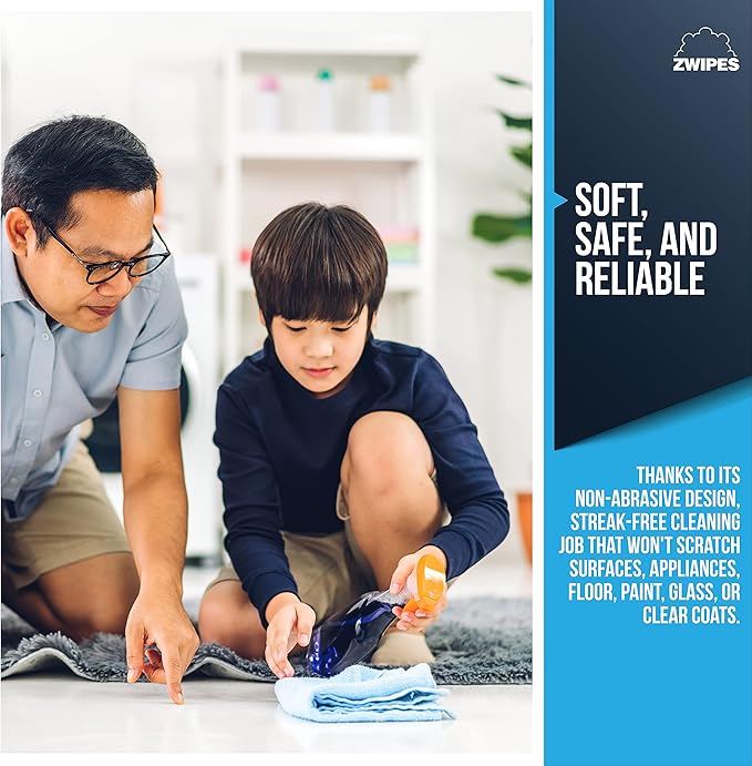 - Plush, super-soft microfiber cloths, ideal for cleaning tasks in the home, garage, office, and more