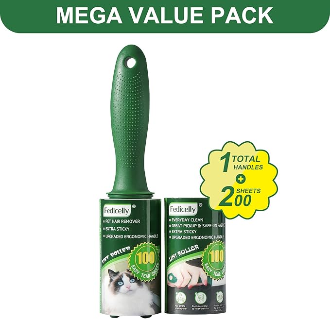 - MEGA VALUE SET 200 SHEETS: This pet lint roller come with 1 upgraded ergonomic handles and 2 lint roller refills, each lint roller refill has 100 Sheets, which is 1.5-2 times that of other similar products, that means you’ll have a total of 200 sticky sheets in stock. Such economical value pack can be long lasting to meet your everyday clean needs. Better quality, higher cost performance.