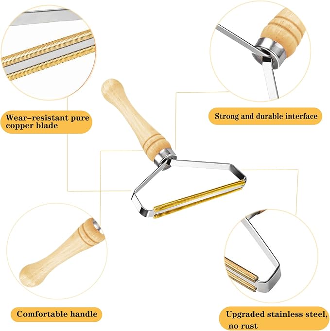 - 🌿 【High Quality Material】Portable lint remover shaver is made of pure copper, which is sturdy. The lint roller handle is wooden. Easy grip for long-term comfort.