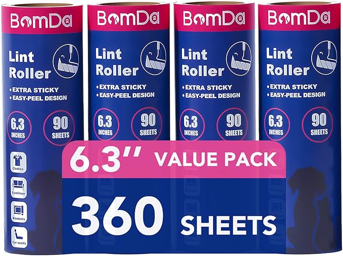 - MEGA VALUE SET : Your sticky lint roller includes 4 pack of 90 Sheets refills for a total of 360 sheets , 6.3inch/16cm Width.