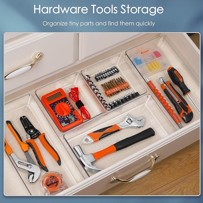 - 【Premium Material】Made of high-quality environmental protection material. Clear design, can help you find what you want quickly. Very sturdy, not easy to break. The drawer organizer is easy to clean with water. Safe material can ensure your family and children's health.