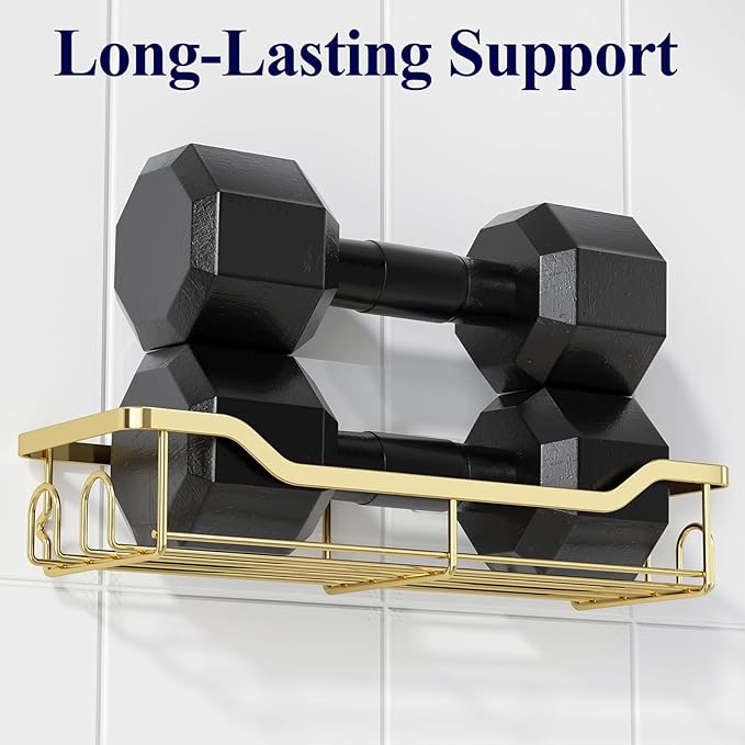 Kitsure Shower Caddy Large - Adhesive Shower Organizer, Stainless Steel Shelf for Inside Shower, No Drill Bathroom Organizers and Storage, Home Decor Accessories, 2 Pack, Gold