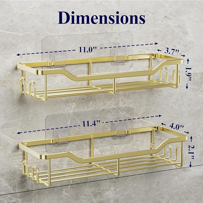- AMPLE STORAGE CAPACITY: With dimensions of 11.4"x4.0"x2.1" and 11.0"x3.7"x1.9", Kitsure 2-pack shower shelves aim to help you efficiently organize your bathroom essentials. Moreover, the built-in 8 hooks allow you to hang any small item, such as razors, towels, bath brushes, shower loofahs, etc.