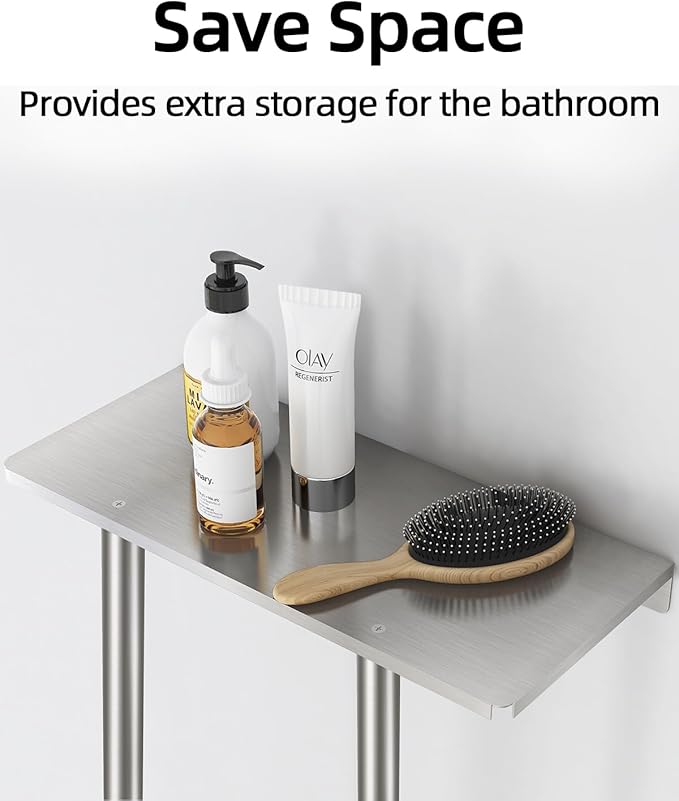 - Easy To Install: Complete with mounting hardware and instructions, easy to assemble. You can easily install the towel shelf for your bathroom next to the shower, over the toilet, etc