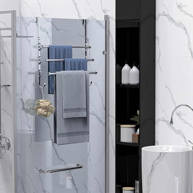 - 【Durable & Sturdy】 Durable over door towel rack for bathroom, made of quality metal material with powder coating finish, making this over the door towel rack sturdy and rust-resistant