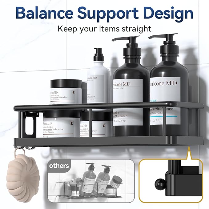 - 【Durable Metal, Hollow Drain Design】The bathroom shower racks are made of high quality metal, high temperature paint process, durable; Passed the 48-hour salt spray test, rust resistant, waterproof, scratch resistant, can accompany you for up to 5 years. Hollow design at the bottom, good ventilation and drainage, convenient cleaning. Keep shelves and bathroom necessities dry