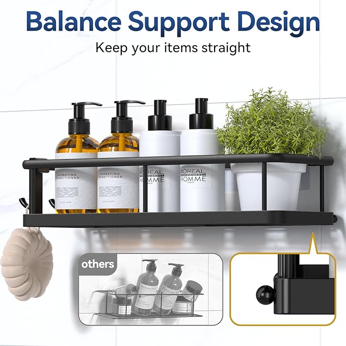 - 【No Drilling Easy Installation】 - The fashion shower shelves can be easily installed in just a few minutes without drilling or tools, ensuring no damage to the walls. Suitable for various smooth and flat surface walls, such as tile, marble, tempered glass, wood walls, or solid metal. And you can use a hair dryer to remove adhesives easily
