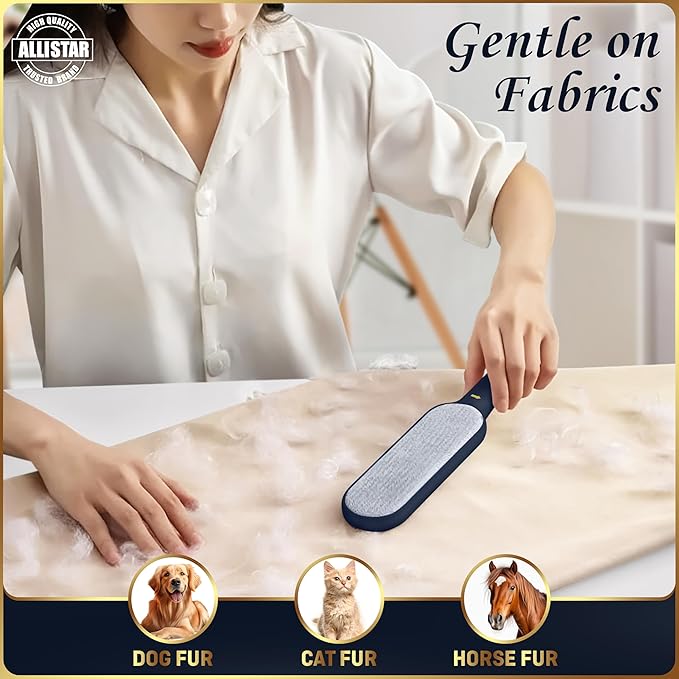 Lint Brush, Lint Remover, and Pet Hair Remover for Laundry, Clothes, Couches, Car Seats, Furniture and Fabric. Reusable Dog and Cat Fur Wizard Hair Removal Brush. ALLISTAR (Midnight Blue)