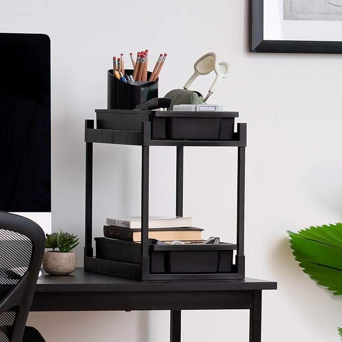 - MAXIMIZE VERTICAL SPACE: This 2-tier under sink organizer is perfect for tight areas, offering efficient under sink storage for your kitchen, bathroom, or pantry.(Tips: Please take measurments of your space before ordering.)