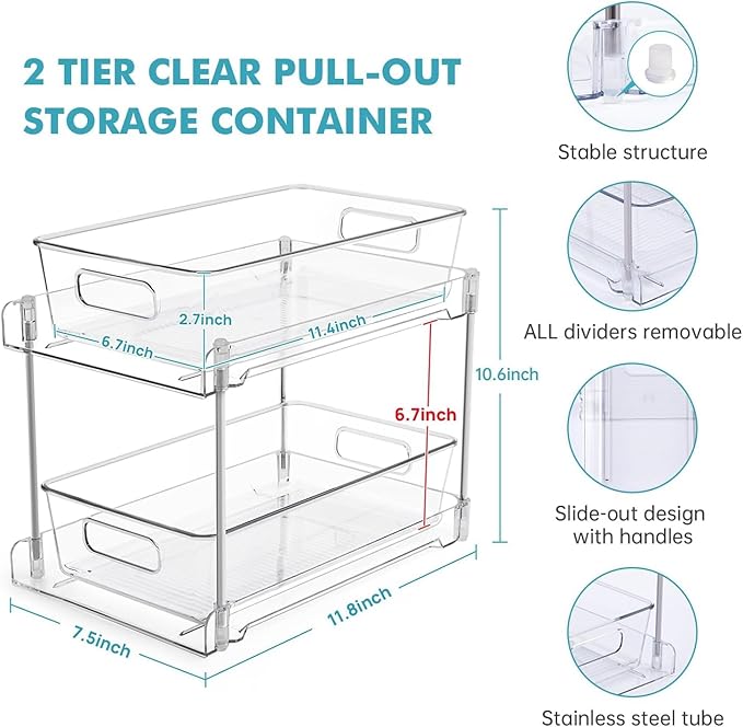 - Double Your Storage Space: This 2-tier clear organizer helps maximize storage space, allowing you to efficiently organize your belongings and double your storage capacity