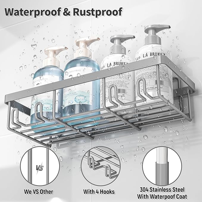 - Durable Stainless Steel: Liuoud shower caddy made of stainless steel with high heat paint process which is waterproof, rustproof and durable. The hollow design makes it dry faster. Even in a humid bathroom environment, it can be used for long time