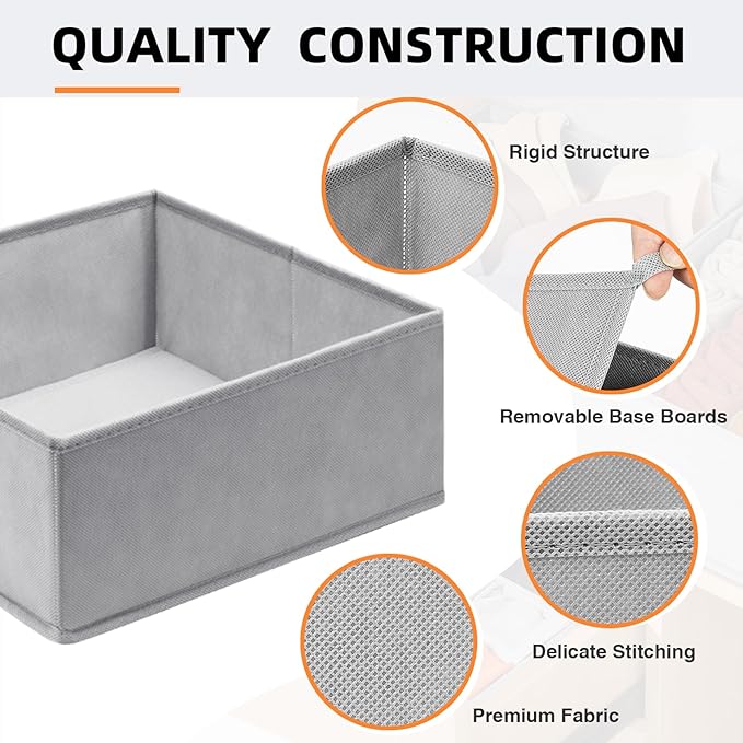 - 【QUALITY STRUCTURE】These dresser drawer organizers feature robust non-woven fabric and expert stitching for extra durability. Enhanced with sturdy boards on the sides and bottom, these organizer bins stay rigid for years. Odorless and perfect for nursery baby clothes storage.