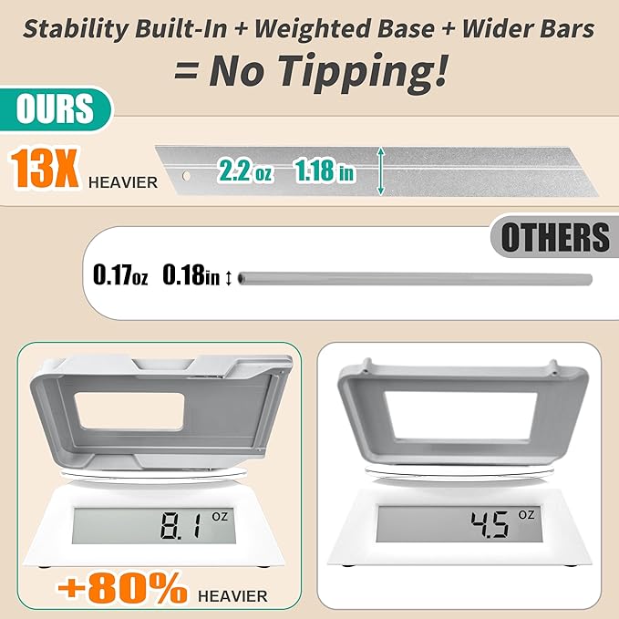 - Ultra-Thick ABS Anti-Tilt Base: Ultra-Thick ABS plastic prevents wobbling on countertops or sinks. Secures delicate makeup, medicines, and kitchen essentials even when fully loaded.