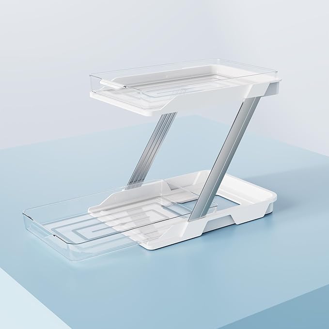 1 Pack Bathroom Organizers and Storage - Multi-Purpose,2-Tier Clear Pull Out Organization for Bathroom,Under Sink,Kitchen,Vanity,Countertop,Cabinet,Pantry & Medicine Cabinet,White