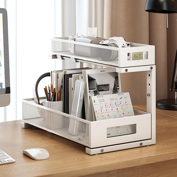 - Special Feature : 2-Tier Pull-Out Design, 5 Adjustable Heights, Mesh Design, Silent and Anti-Tip Round Slide Rails
