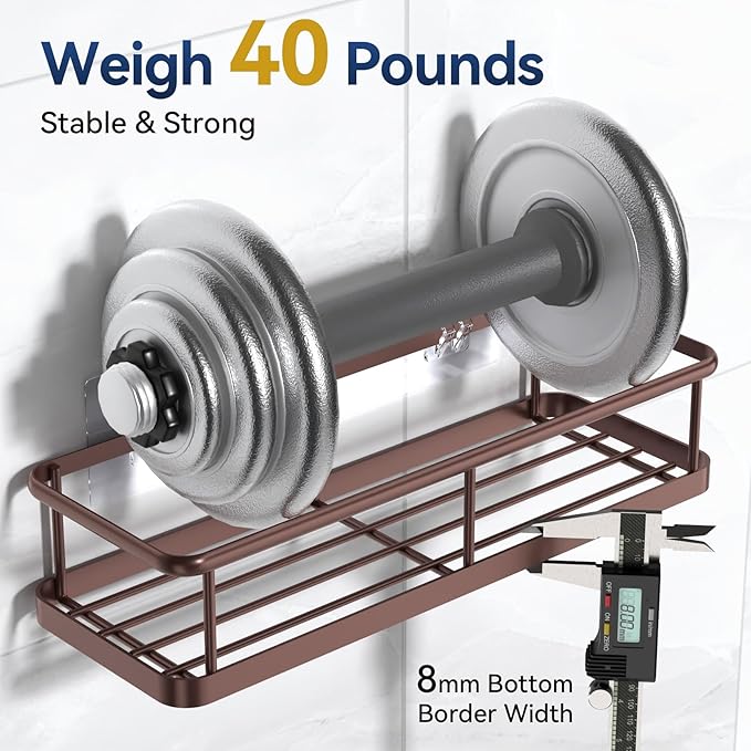 - 【Weight 40 Pounds, Super Adhesive Force】Double hooks allow the shower shelf for inside shower to hold 40 pounds. Small round beads on the back for greater stability. Keep bottles in the shower basket in the bathroom so they are easy to access and use. When installed correctly, there is no need to worry about dropping