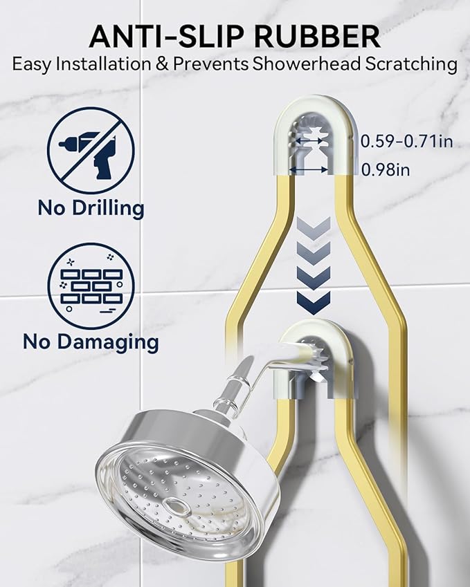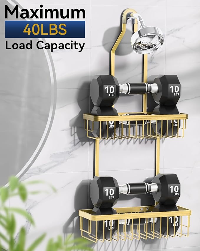 - Ergonomic Design & Universal Fit: Unlike other shower hangers, our upgraded shower holder features an expanded height between shelves, which allows the lower tier to accommodate taller and larger bottles without interfering with the upper shelf or your showerhead. Also, the bathroom organizer fits most-sized showerheads