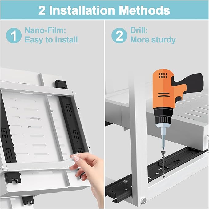 - ๐ ๐๐ฌ๐ญ, ๐๐จ-๐๐ซ๐ข๐ฅ๐ฅ ๐๐ง๐ฌ๐ญ๐๐ฅ๐ฅ๐๐ญ๐ข๐จ๐ง: Install in minutes using nano adhesive or screws. Perfect for renters or homeowners needing an easy upgrade to their under bathroom sink organizer, sink organizer, or other organizers and storage needs.