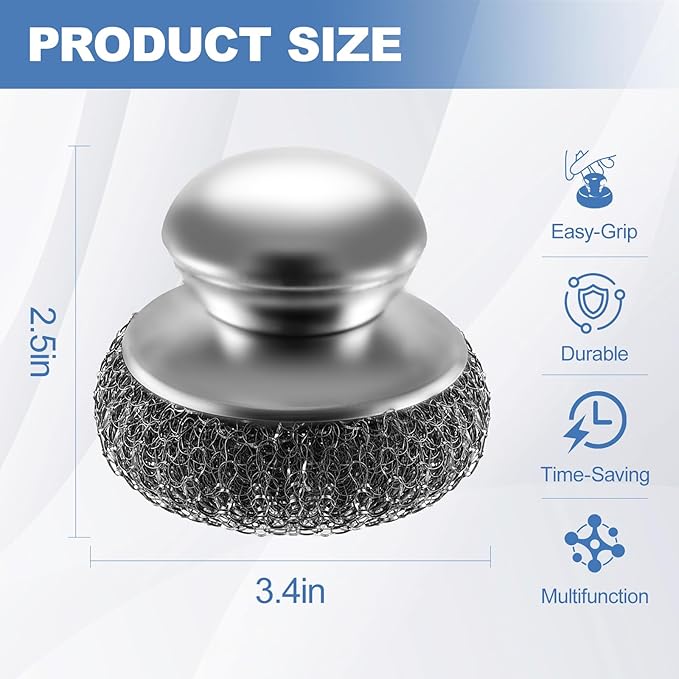 - 【Durable & Efficient Build】This steel wool scrubber is crafted entirely from premium stainless steel,ensuring long-lasting durability and resistance to rust.The steel scrubber for dishes lightweight design allows for easy handling,while the abrasive surface delivers powerful cleaning efficiency,making it a popular choice for tough kitchen tasks.